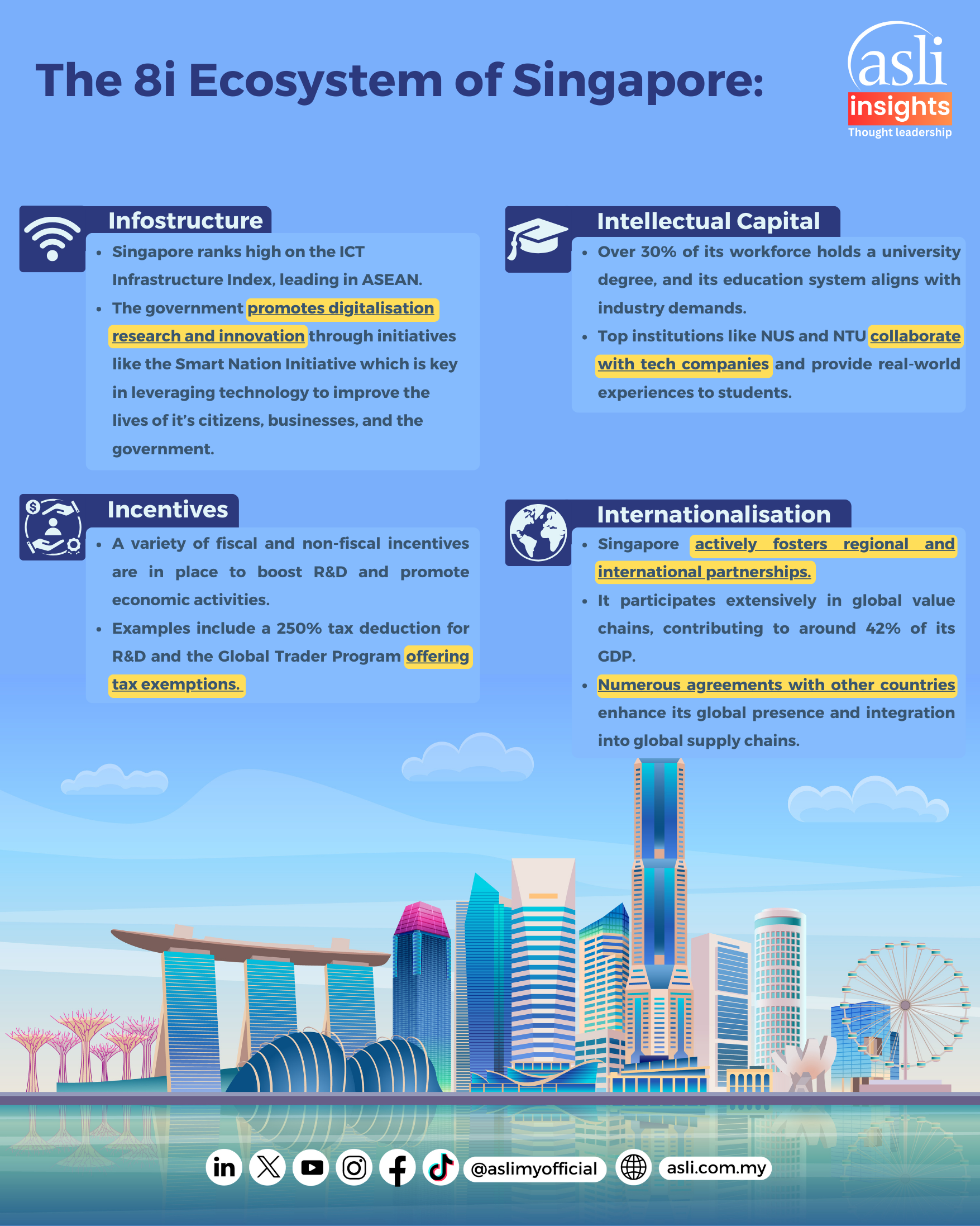 Singapore stands as an economic beacon, setting the pace for ASEAN's economic development through its 8i Ecosystem, carving a path for a robust growth and innovation. As the global landscape continually evolves, Singapore remains committed to fostering deep interconnectivity, laying down the blueprint for sustainable growth and beyond.