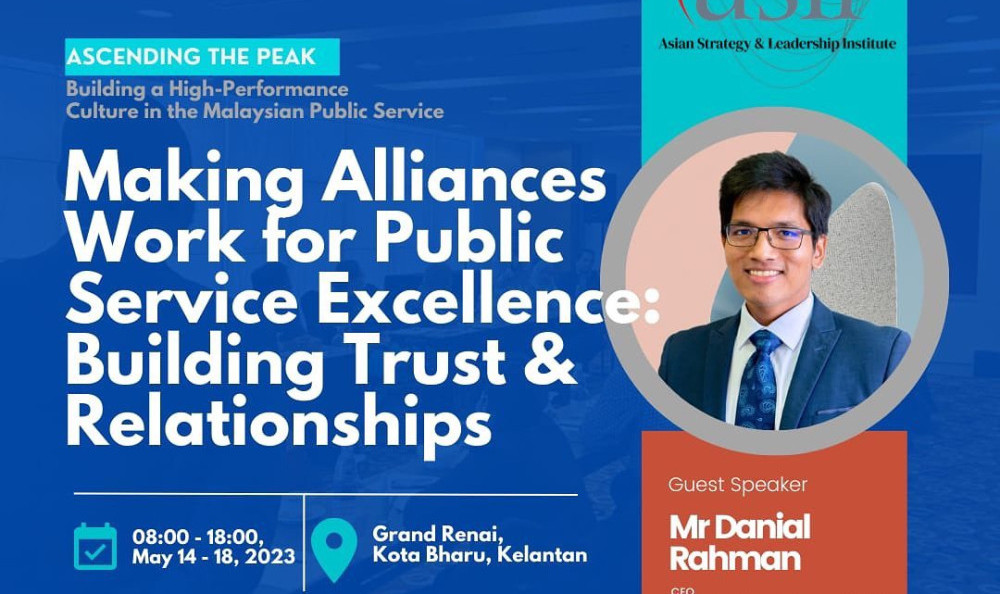 ASLI Insights INSIGHTS / 4 September 2023 Asia at the Crossroads: A Disrupted World in Need of Innovative Disruption INSIGHTS / 4 September 2023 Making Alliances Work for Public Service Excellence: Building Trust and Relationships Pagination Previous page ‹‹ Page 49 Search Category Insights