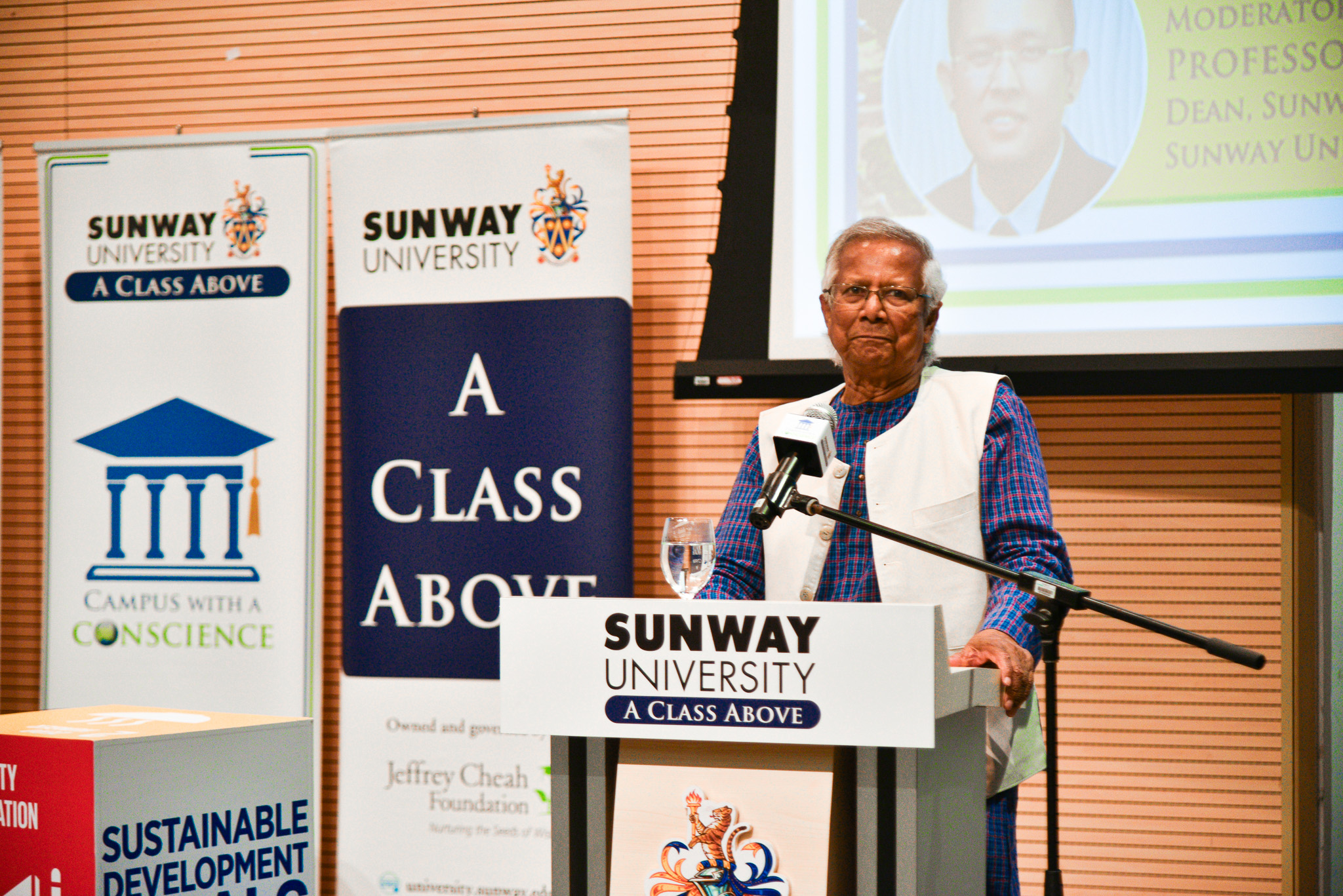On July 31st, 2023, the Campus with a Conscience (CWAC) Series at Sunway University proudly presented a special lecture titled "Entrepreneurship For A Better World: Achieving The Three Zeros Agenda." The insightful session, held between 3PM - 4PM at JC2, Sunway University was graced by none other than Professor Muhammad Yunus, the Nobel Peace Laureate of 2006.