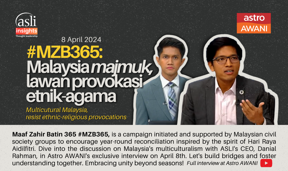 The CEO of ASLI was interviewed by Astro AWANI to discuss Malaysia's virtue of multiculturalism, and the importance of resisting ethnic-religious provocations.