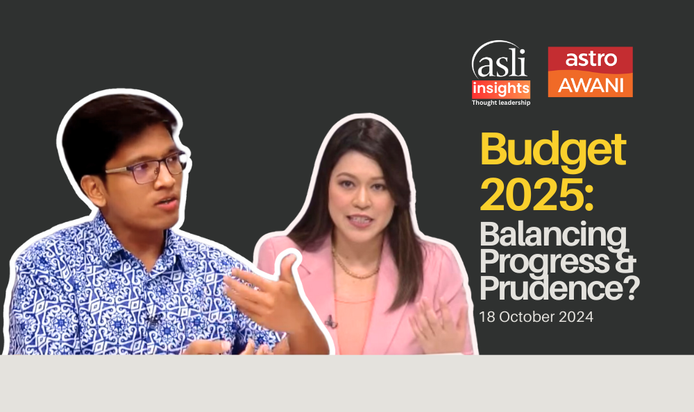 The CEO of ASLI was featured on Astro AWANI’s Consider This with host Melissa Idris and fellow panellist Doris Liew from IDEAS, where they discussed the key takeaways from Budget 2025 and its implications for Malaysia’s progress.